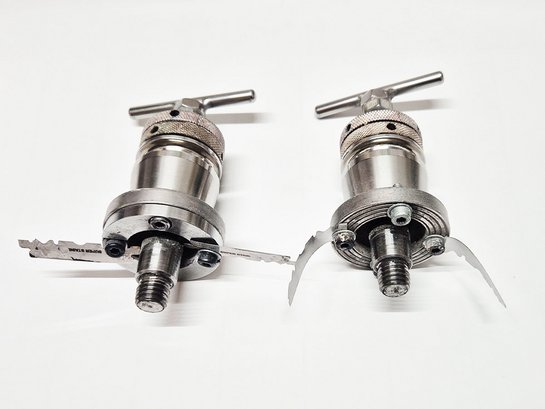 In der Produktion in Hausen wurde schon lĂ€nger nach einer praktikablen Lösung gesucht. Den entscheidenden Impuls lieferte eine Mitarbeiterin: Bei einem anderen Verfahren kommen Messer gleicher Abmessung in Kombination mit einem Spannring zum Einsatz, der automatisch fĂŒr den passenden Freiwinkel sorgt â warum dieses Prinzip nicht ĂŒbertragen?