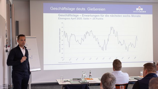 Besonders viel Resonanz gab es auf den Vortrag von Dr. Marc Mateika, den Geschäftsführer der MeierGuss-Gruppe. Er thematisierte aus unternehmerischer Sicht die wirtschaftliche und politische Situation in Deutschland und die daraus resultierenden Auswirkungen auf die deutschen Gießereien. Schwerpunkte seines Vortrags waren die Wettbewerbsfähigkeit des Standorts Deutschland, die Entwicklung der CO2-Bepreisung sowie die verstärkte Optimierung technischer und betriebswirtschaftlicher (Kern-)Prozesse. Zudem ging es um den Aufbau von Know-how in relevanten Bereichen wie Energie und Schrottversorgung. Sein Fazit: „Nicht jammern, Zukunft aktiv gestalten“, mit dem er seinen Vortrag beendete, schildert recht gut die aktuelle Lage und Stimmung in der Branche.
