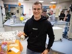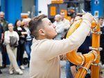 In der zweiten Fokusabteilung Montage Strahltechnik wurden der oder die schnellste(n) Rohrverleger gesucht. Die Spielregeln waren simpel: Alleine oder als Team musste aus bereitgestelltem Rohrmaterial so schnell wie möglich ein „R“ montiert werden. Das machte niemand schneller als Pascal Höhn und Florian Kraus in 31 Sekunden. Dafür gab es einen 100 Euro-Gutschein von Wunschgutschein.de. Auf den Plätzen 2 und 3 landeten Max Schulz / Adrian Häfner in 40 Sekunden und Denise Schumann und Daniela Kern in 45 Sekunden. Auch sie durften sich über Wunschgutscheine im Wert von 75 und 50 Euro freuen.