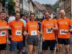 Einige Wochen später stand dann nicht die Zeit, sondern der Teamgedanke im Mittelpunkt: Beim Neue Presse-Firmenlauf in Bad Rodach ging es für die Rösler-Läufer vor allem um Spaß, Gemeinschaft und ein gemeinsames Lauferlebnis. Unter den 1861 Teilnehmenden war auch hier Philipp Reuter wieder vorne mit dabei, doch diesmal ohne Podestplatz – denn bei diesem Event zählte das „Wir-Gefühl“. Die sieben Rösler-Starter stachen in Orange gut zwischen dem vielen Gelb heraus und hatten großen Spaß auf der rund vier Kilometer langen Strecke.