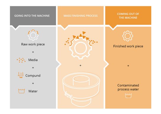 Mass finishing processes are effective because the motion of media against work pieces transforms the surface of the work pieces. The deflashing, de…