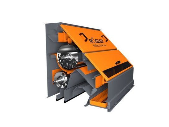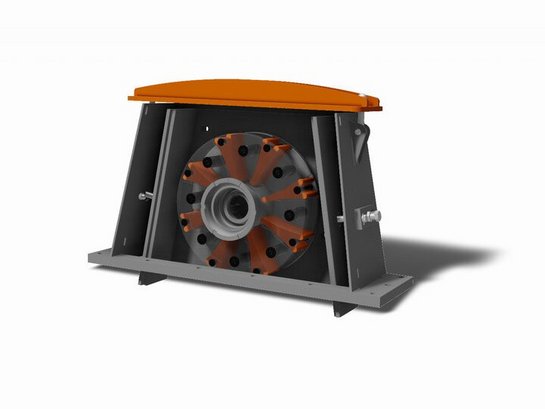 RHBE-F machines can be equipped with two, three, or four Gamma 400G blades each, magnetic separators, pneumatic doors, and vibratory conveyors come standard. Blast chamber walls are .4 in (10 mm) thick manganese steel walls with an additional .4 or 1 inch (10 or 25 mm) thickness of wear plates added on the ceiling and opposite the turbines.