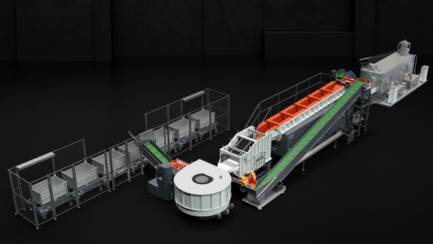 At the same time, the work pieces can also be rinsed before they are transferred to the next processing station, for example, a dryer. The media is then returned to the processing bowl with a combined vibratory/conveyor belt transport system.