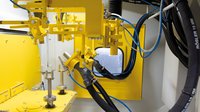 The specifications of the garden implement manufacturer were quite comprehensive and detailed, demanding full automation of the entire manufacturing operation. Among other things, this included supplying the injection molding machine with threaded bolts, the actual molding operation, the de-flashing and cleaning of the components - containing through-holes - at a cycle time of 60 seconds (per two parts) and, finally, the transfer of the de-flashed components to the assembly line. Based on processing trials, conducted by the sales and process management team at Rösler, an equipment concept was developed around the proven swing chamber machine RWS 1200. This system was specifically designed for gentle de-flashing of thermoset and highly filled thermoplastic components.