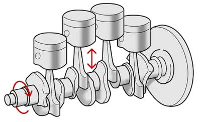 movement of the pistons/connecting rods into a rotational movement that drives