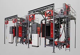 Turbine technology is the predominant blast system used for foundry applications. The large blast pattern of turbines allows effective cleaning of huge work piece surface areas in a highly productive and cost-efficient manner. Air and wet blasting are primarily used for special applications like shot peening or blast cleaning of very delicate parts with thin walls.