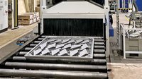 The blast machine is built from eight mm thick manganese steel. In addition, the blast room is lined with easily replaceable, overlapping wear plates made from the same wear resistant material. Six high performance Gamma 400G turbines â three blasting from the top and three from below - each with an installed power of 15 kW, ensure consistent high-quality shot blasting results. The Gamma turbines are equipped with Y shaped throwing blades, which, compared to conventional turbines, produce a 20% higher blast performance with, at the same time, lower energy consumption. The fact that both sides of the Y shaped throwing blades can be used practically doubles their uptime. A quick-change system allows the replacement of worn blades with new ones without having to disassemble the turbine. Another feature of the new system is that the dust collector was placed on the roof of the shot blast machine. This saved valuable manufacturing space. âWe liked the equipment concept with its numerous technical features. However, before making our final decision, we wanted proof that all our requirements could be met â, comments Frank Steinert.